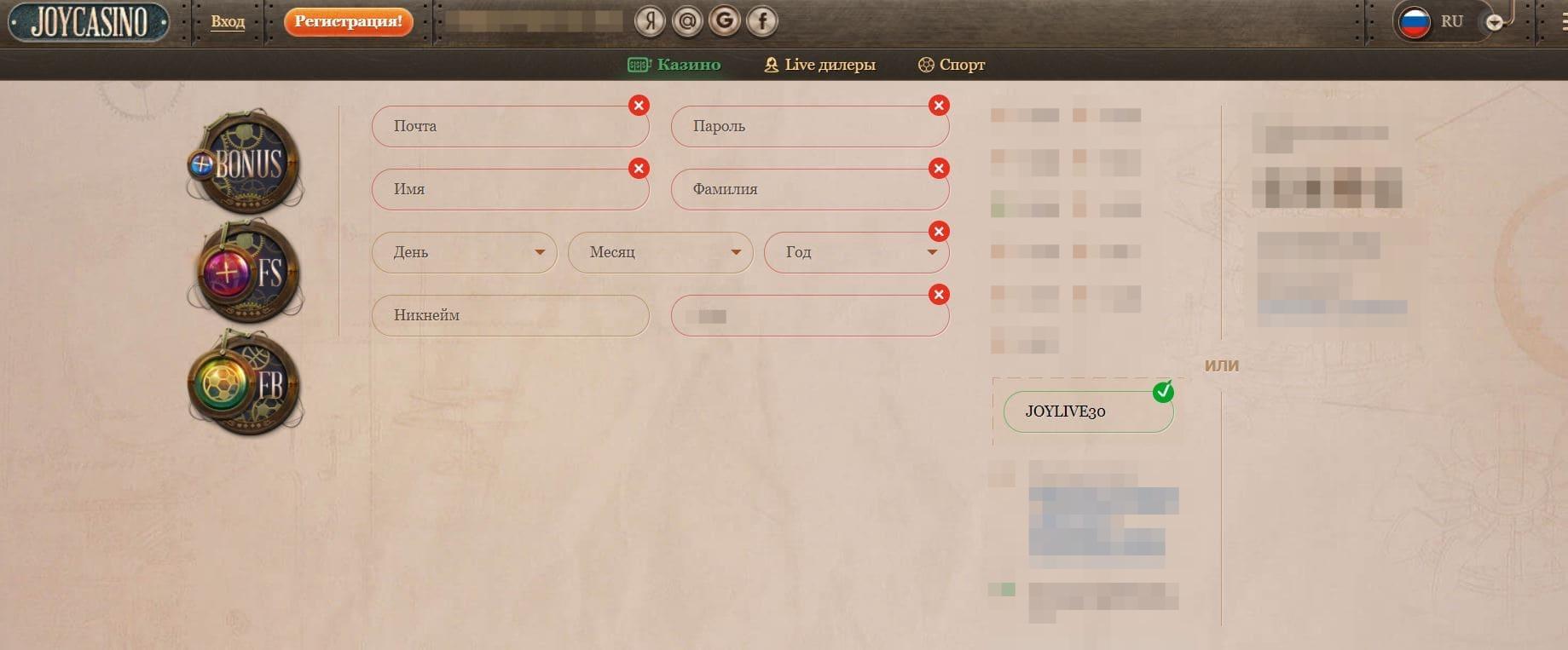 Промокод JOY30: 30 Фриспинов за Регистрацию